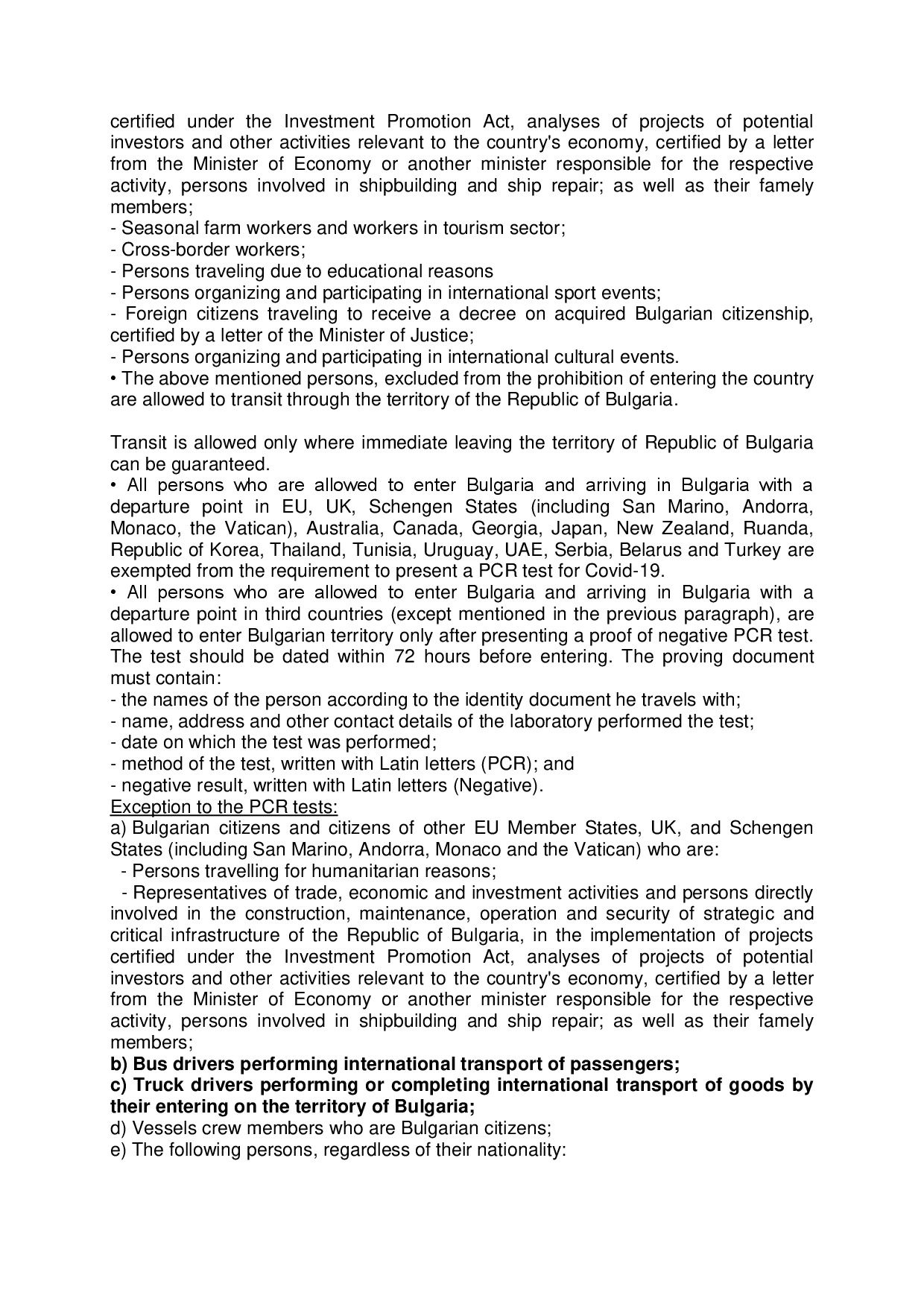 BULGARIA. ACTUALIZACIÓN MEDIDAS RESTRICTIVAS POR CORONAVIRUS