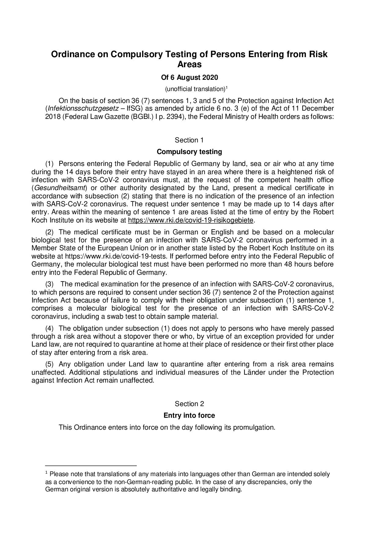 En efecto se han establecido la obligatoriedad del test del COVID 19 para personas que ingresan a Alemania desde áreas de alto riesgo -algunas regiones españolas están incluidas- pero también se prevén exenciones para conductores.