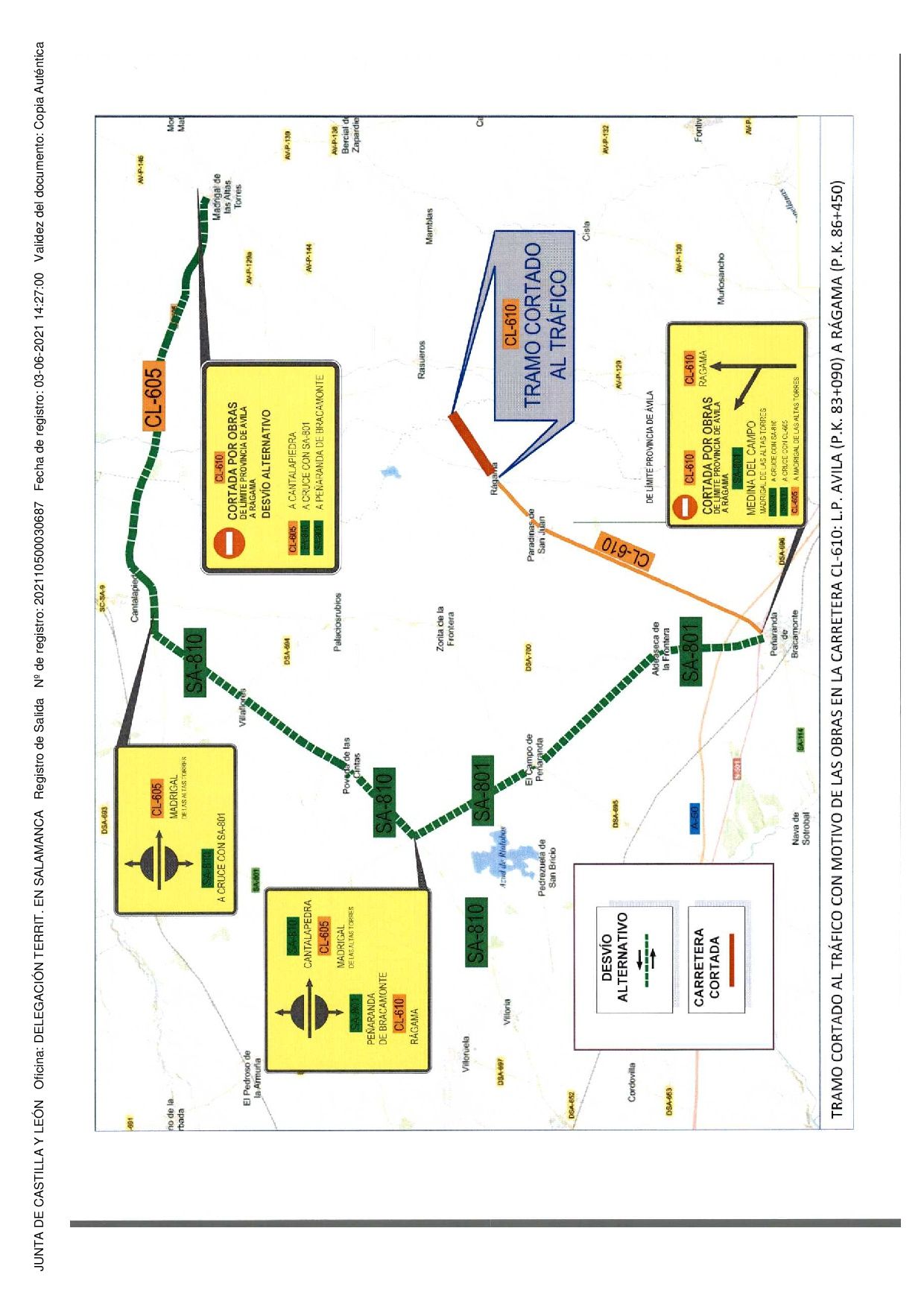 Se adjunta notificación relativa a corte de tráfico con motivo de obras en la carretera CL 610.