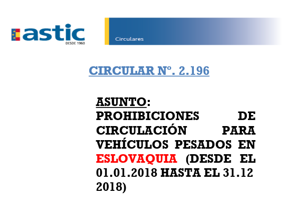 2196 Eslovaquia. Prohibiciones circulación 2018