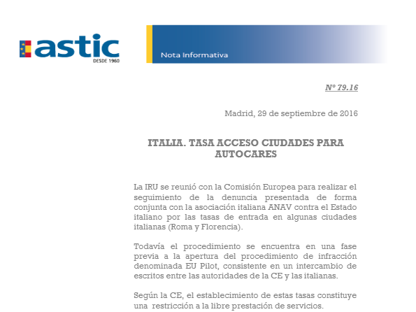 N.I. 79.16. Viajeros. Italia. Tasa acceso ciudades